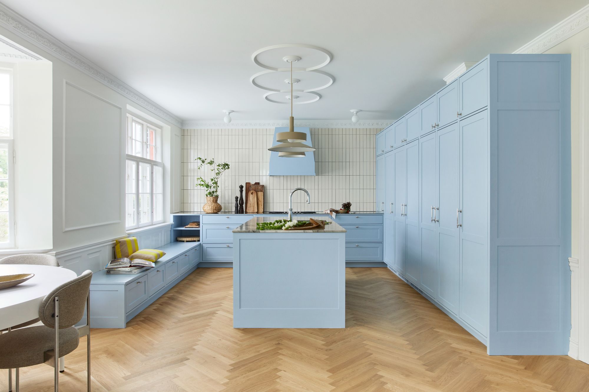 Ett snickerikök från Handcrafted Interior är skapat för att användas. Bruksspår är inte fel, utan liv: handtag i rå mässing får med åren en mörkare yta, de stilla förändringarna i ek och marmor – allt mognar och samlar karaktär, precis som de människor som rör sig i rummet. Känn texturerna, känn tiden. Varje vardagsrutin lägger ett nytt lager historia till både material och hem.